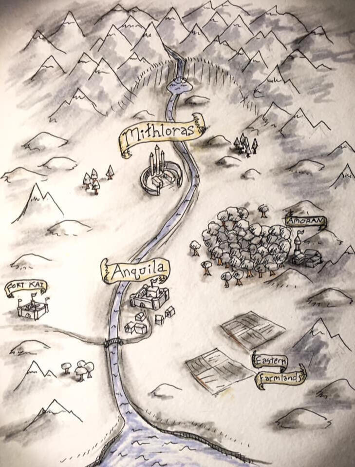 Founded by war-hardened veterans and survivors, the nascent kingdom of Anquila is a melting pot of people from different cultures and walks of life. Anquilans are resilient folk, unshakable and no strangers to hardship. Scarcity and close quarters during the fight to reclaim the world led to the development of a cross-cultural tongue known as Resolang, as well as a dependency on high-yielding mushrooms as an agricultural staple. These are a point of local pride, even if there are very polarized opinions on the national dish. Close quarters seem to be on peoples’ minds, as more and more spirits are resurrected at the Earth Circles every day. The population has started to boom, and most are hard at work establishing their new land, building homes and working farmland to support the rising numbers.Anquila sits in the southern end of the Great Valley, on the eastern bank of the river Sevaladen. The capital city has been rebuilt atop the ruins of the city of Andekullar, which was granted to King Darve and those that follow him by the Anavari of Mithloras at the end of the Void War.